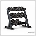 Store your dumbbells in a designated space that you can easily access while keeping things organized in your home gym! This rack stand features a 3-tiered storage space designed to accommodate dumbbells of all sizes.