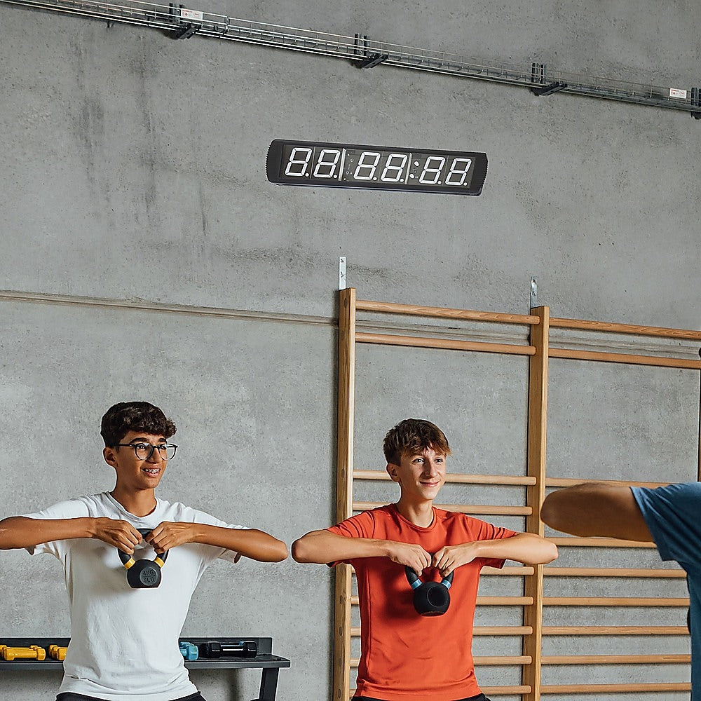This digital timer boasts extremely large, brightly lit digits; the display itself is 650mm long and 120mm wide. The entire unit is 730mm long, 160mm wide and 40mm thick.