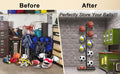 Moved Freely of Each Hanging Bar: This basketball storage holder has a total of 7/9 removable hanging bar, you can hang in any arrangement as you like or needs. A straight whole ball needs to be separated by a layer of height, while a flat ball like a rugby ball can be placed on each layer in a row.