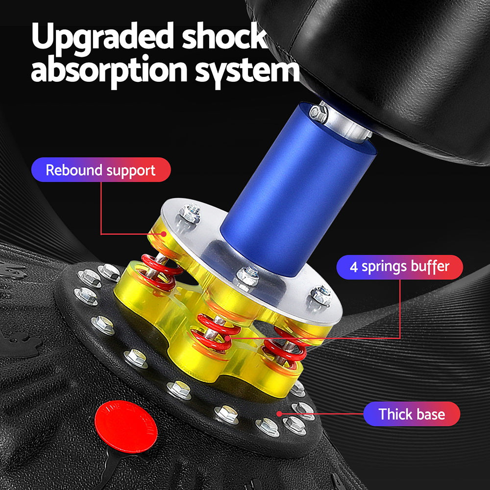 Get your daily boxing routine done in style and convenience with the Everfit Boxing Bag Stand. Made from sturdy multi-layered material, the boxing bag and stand are designed to absorb whatever you throw at it, giving you a real workout. The thick and sturdy base keeps the bag in one place and prevents tipping. It can be secured with 12 strong suction cups, and you can fill the base with water or sand to guarantee stability. The reinforced shock absorption system with four springs cushioning ensures reduced vibration and quiet operation, so you can exercise in comfort and quiet. The high rebound bag easily returns to its original position after punching and gives you a range of movement to practice with. Easy to install and easy to maintain, the Everfit Boxing Bag Stand will help relieve stress, improve your physical defence and keep you fit.