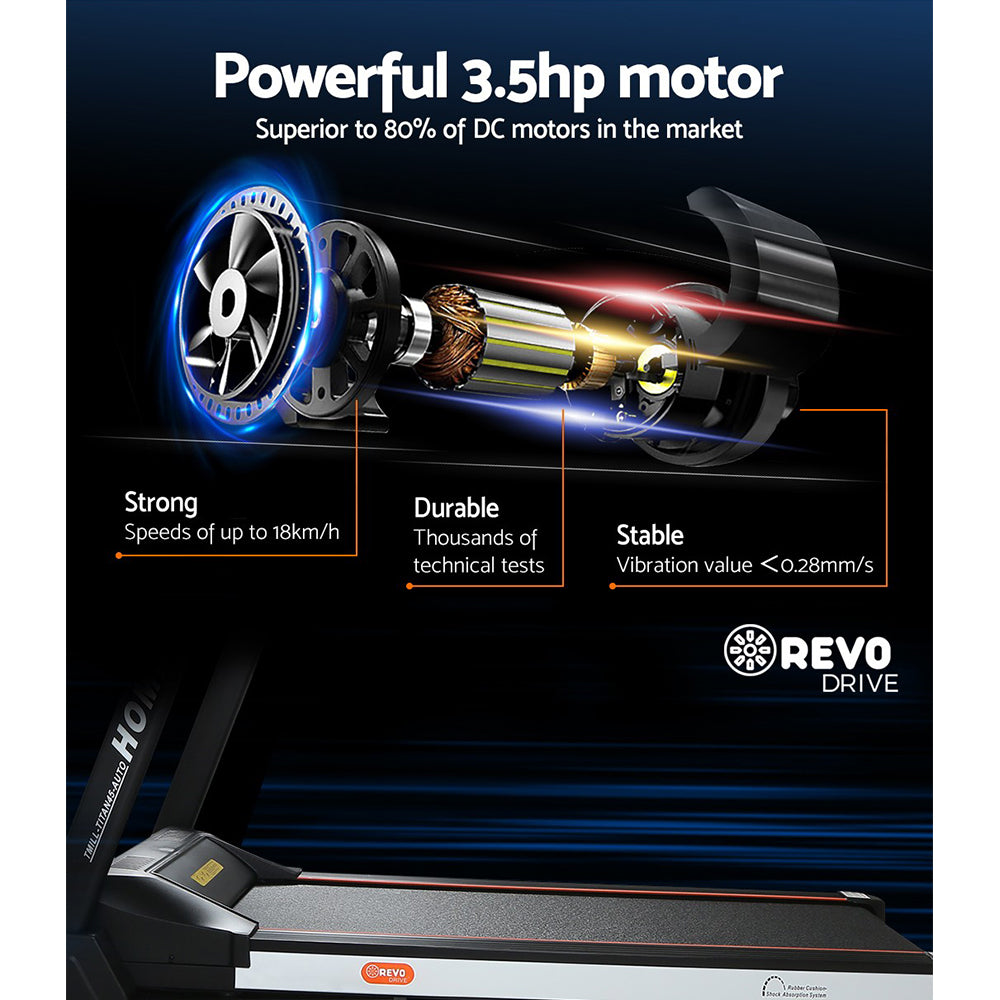 Everfit Treadmill Electric Auto Level Incline Home Gym Fitness Exercise 450mm