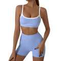 Stay stylish and comfortable with our fitness wear set, perfect for yoga, gym workouts, or casual outdoor activities. This trendy set includes a sleeveless sports bra and matching shorts, featuring contrasting colors and a sleek design for ultimate support and freedom of movement. The breathable fabric ensures you stay cool and dry during even the most intense activities. Ideal for a variety of sports and outdoor adventures, this activewear set is available in multiple colors to suit your personal style.