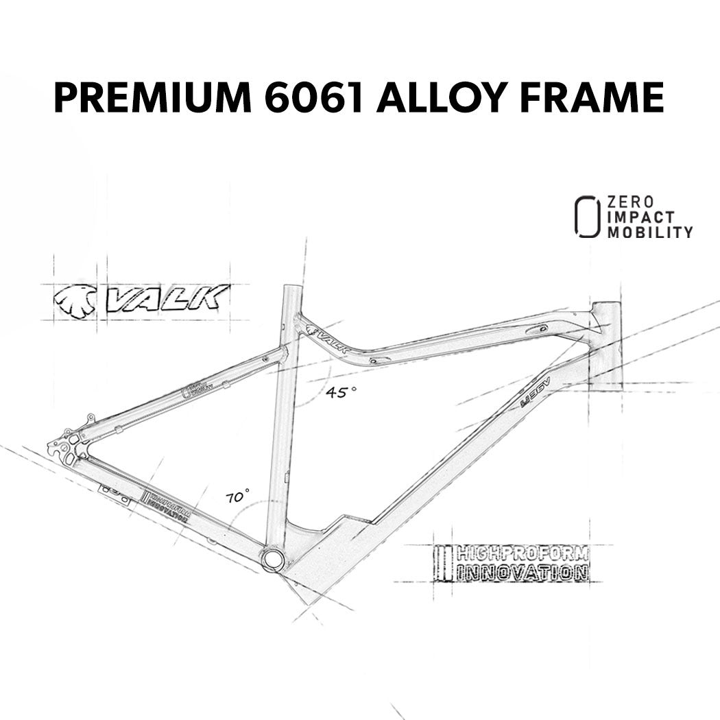 Reach new limits with the Valk MX7 series electric mountain bike. This MX7 features a short wheelbase geometry, front XDT shocks, lightweight 6061 Alloy frame and disc brakes. With this combination it has the agile handling and stopping power for flying down technical single trails.